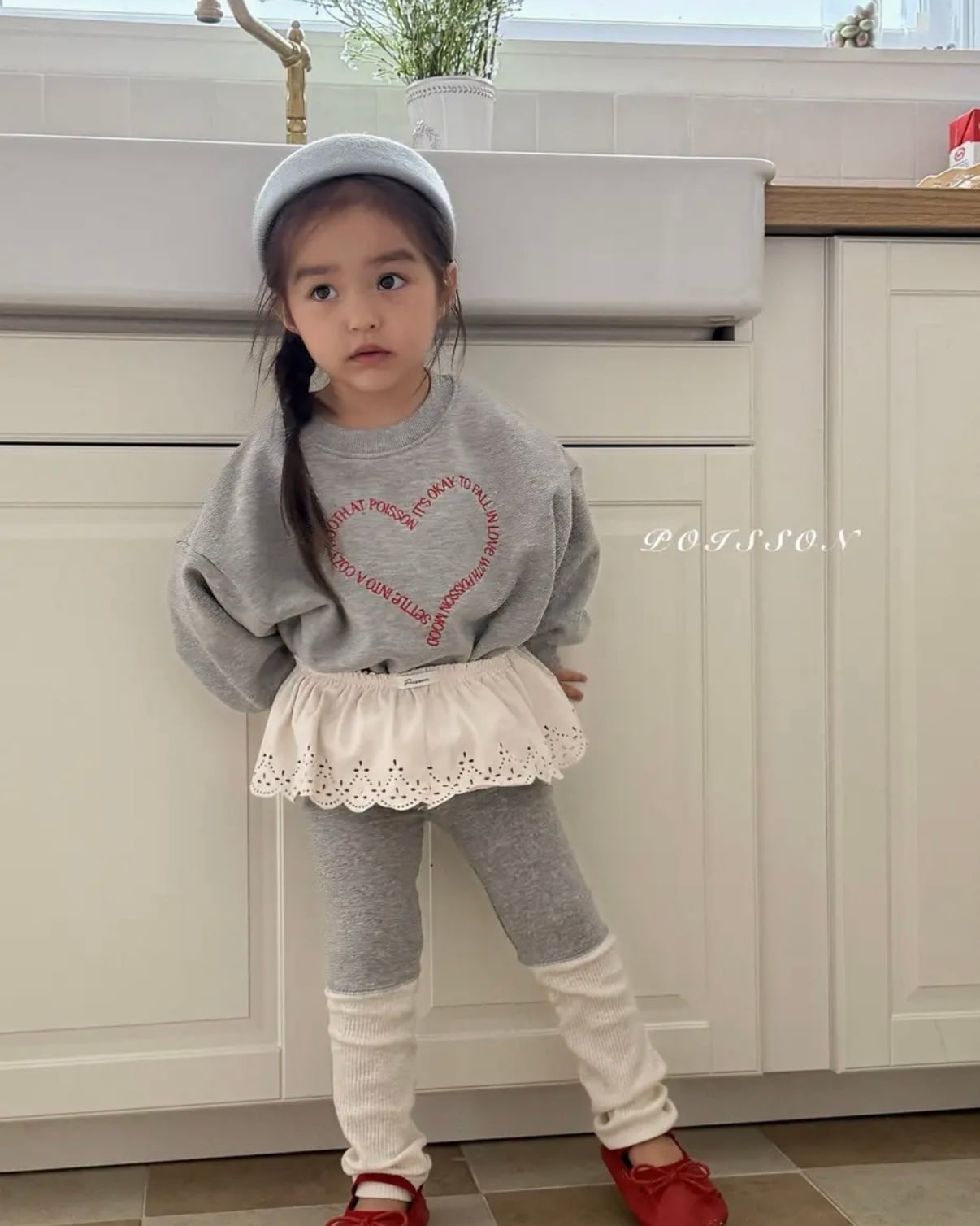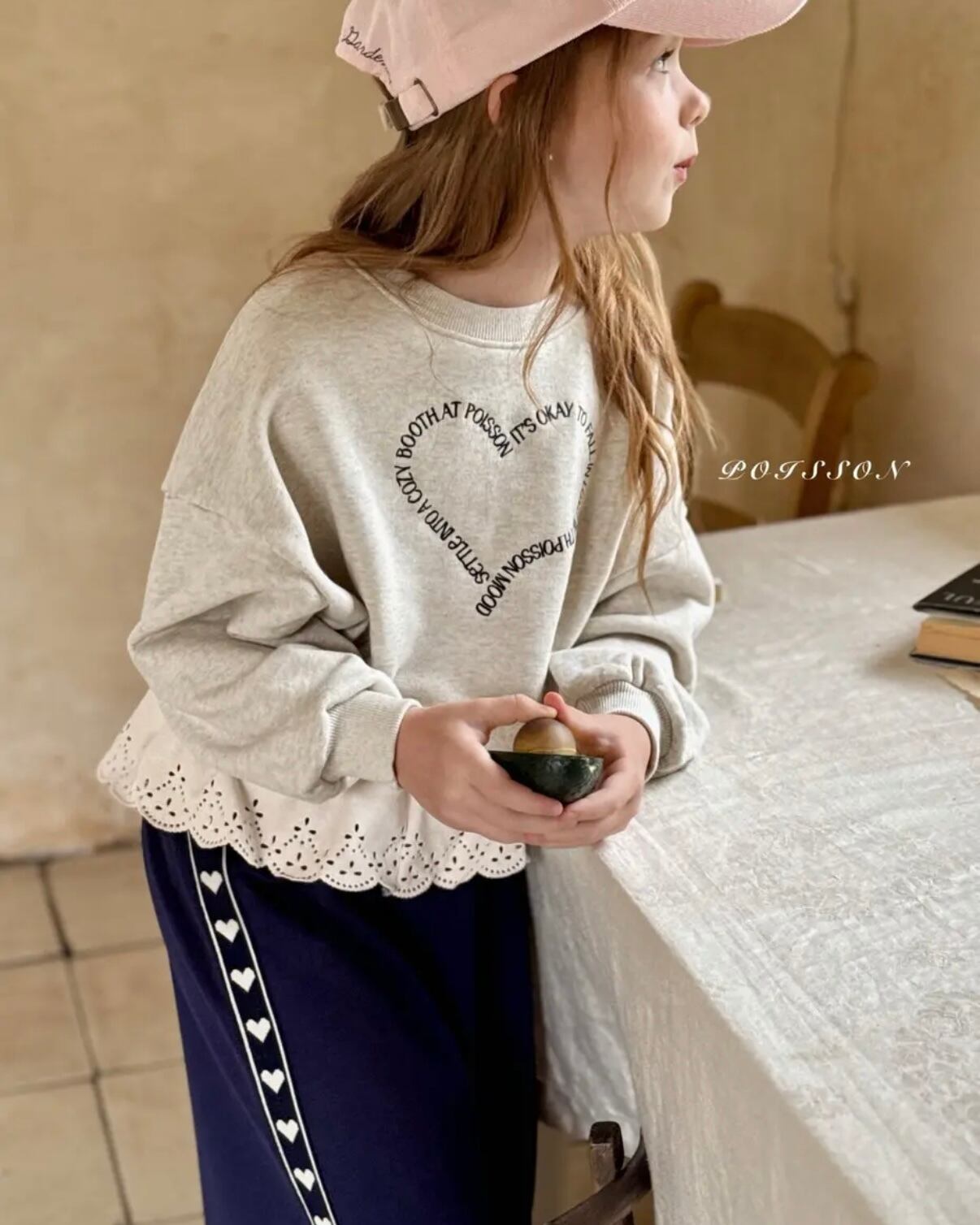 【予約/送料無料】POISSON / heart embroidery sweatshirt
